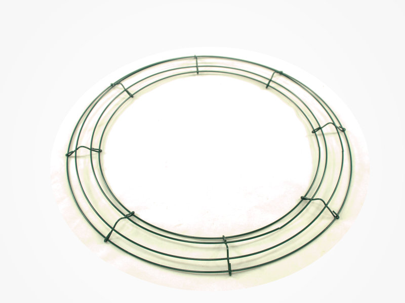 The box wreath frame is painted green, circular and constructed in such a manner as to hold material in a box shaped frame work.