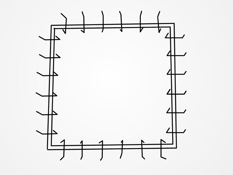 These shapes are made of two parallel wires 3/4" apart forming the shape. Horseshoe shaped clamps are then welded at three-inch intervals along all parts of the shape. This creates a 3/4" wide flat base which is both strong and ideal for clamping greens.