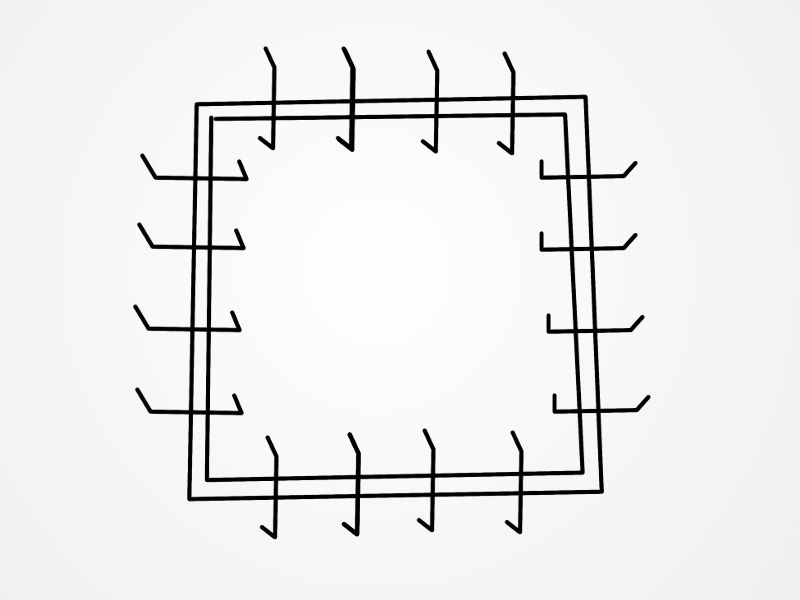 These shapes are made of two parallel wires 3/4" apart forming the shape. Horseshoe shaped clamps are then welded at three-inch intervals along all parts of the shape. This creates a 3/4" wide flat base which is both strong and ideal for clamping greens. These shapes are painted green for better appearance and to reduce problems associated with rusting. The clamp-on shapes are easy to use and use fewer tips than other methods of wreath making. This double wire construction adds strength and stability to your finished product.