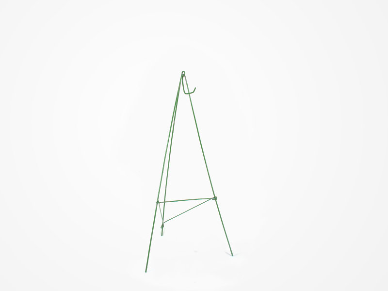 These folding easels are made with a hook at the top for hanging a wreath. They can be used in the cemetery by inserting the legs into the earth for stability.