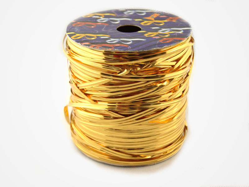 Two rolls of gold wire tie for tying bows or other decorative purposes.