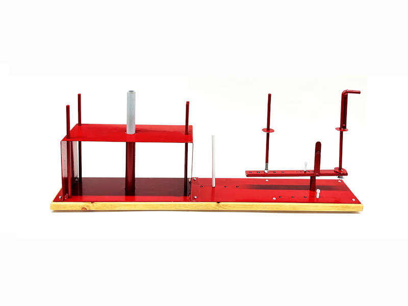 This manually-operated unit greatly simplifies the task of making bows. It