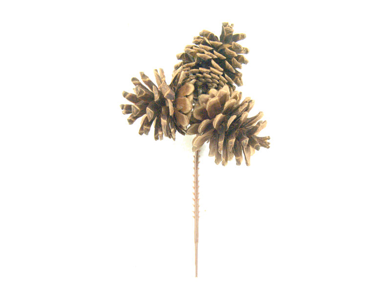 These natural pine cones are time savers because they are already in clusters of three and are mounted on a 5" pick. All you have to do is use your imagination and decorate your creations.