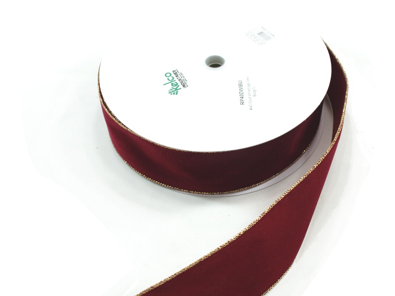 This weather resistant ribbon has a nylon polyester back with a gold wired edge and is available on larger rolls.