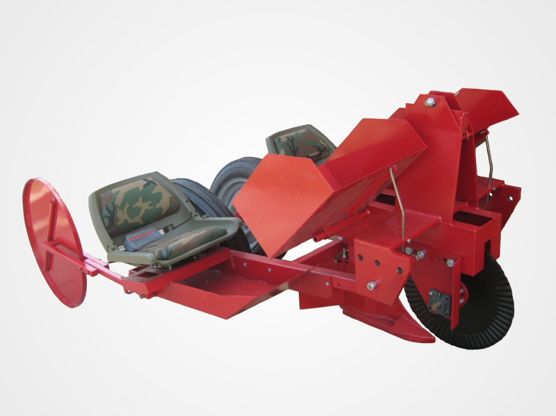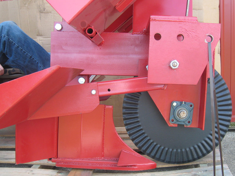 We built this planter for our own use. It works great in sod or plowed ground for small or large transplants. The planter weighs 760 lbs. Towing specifications: three-point hitch-category 1 or 2. The minimum horsepower of the towing tractor is 16 HP. The planter is equipped for two individuals to be seated and to plant. To plant in sandy or loamy soil, set furrowing shoe to desired depth (up to 9" maximum). Tree planter should be made to point slightly downward when attached to tractor or tow vehicle. This will insure an aggressive cut by the coulture wheel. Two people should be used during planting process. If you are to use one person, the opposite seat should be weighted at approx. 160 lbs. This insures that the packing wheels (rubber wheels in rear) will be able to repack the soil that was displaced by furrowing shoe. Drive shoe spacers come with the Tree Planter. These spacers are used to set the width of the wings of the shoe, which in turn, determines the width of the furrow. The three spacers are as follows: small spacer will give you a 4" furrow, medium spacer creates a 6" furrow, and the large spacer creates a 8" furrow. The size of the spacer is determined by the individual planting requirements of the user. An optional Spacing Wheel Attachment may also be used with the Kelco Tree Planter. This is an enclosed metal wheel which is attached to the side of the planter and rides on the ground next to the planter. Inside the metal wheel is a spring that rides within a metal tube. The spring makes a clunking sound once during a full rotation of the wheel. When clunking sound is heard, person planting trees should immediately put tree in furrow. The spacer wheels come in the various sizes: from 4 to 8 feet. A wheel can also be special ordered to users exact requirements. To plant trees in a straight row, the driver of the tow vehicle should pick a line of sight object in front of him. This object can then be sighted with an object on the tow vehicle it self. Once the two objects are in direct line of sight, you can commence the planting project. TIP:Once first row of trees has been planted, a rod, with one end attached to front of tow vehicle, and a rope or light chain approximately the height of tractor from ground up attached to other end, can be used to keep rows straight. The hanging chain or rope is used to go lightly over your first row of trees and is used to insure that the second row and so on are equidistant from the first row. SPECIFICATIONS