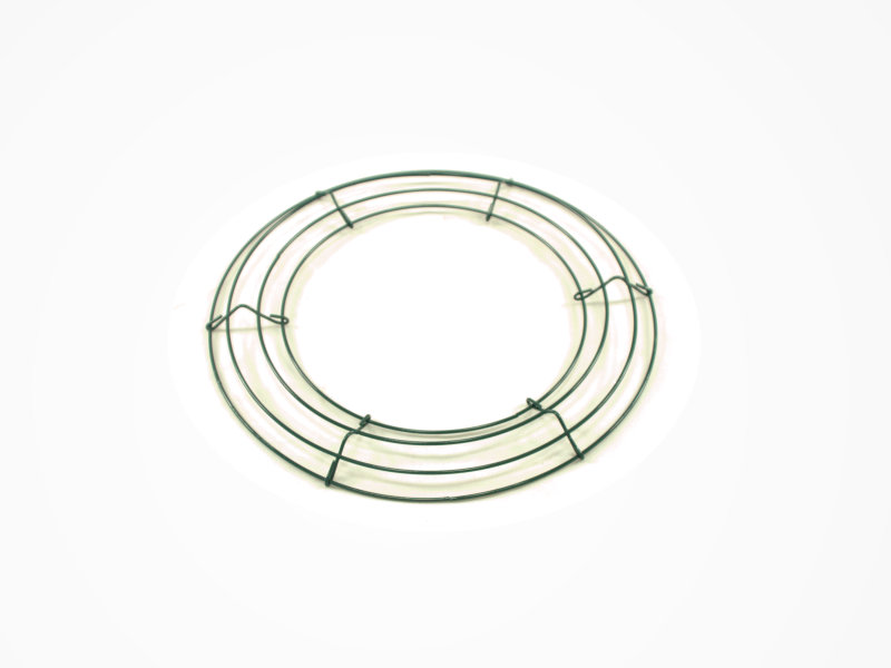 The box wreath frame is painted green, circular and constructed in such a manner as to hold material in a box shaped frame work.