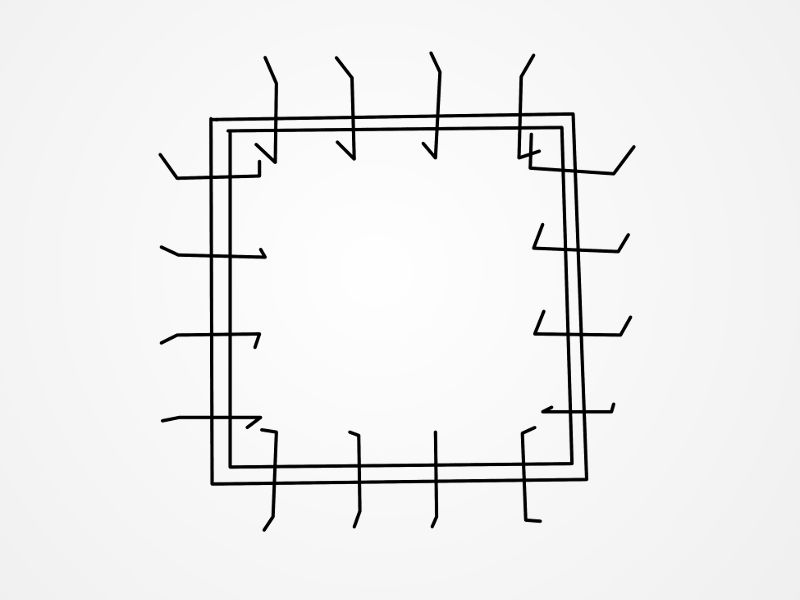 These shapes are made of two parallel wires 3/4" apart forming the shape. Horseshoe shaped clamps are then welded at three-inch intervals along all parts of the shape. This creates a 3/4" wide flat base which is both strong and ideal for clamping greens.