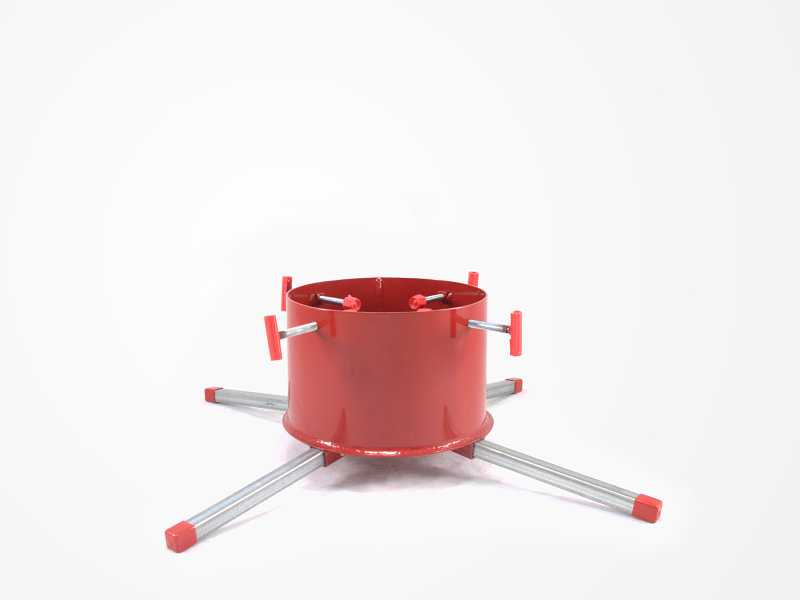 The 10" diameter stand has a water capacity of 1.75 gallons and holds up to a 12' tree. The legs are 28" wide.