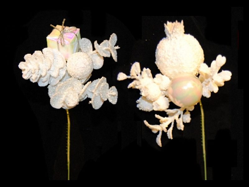 These frosted white decorations will add the spirit of Christmas and expand the creative possibilities of your holiday offerings.