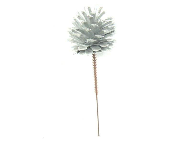 These pine cones are are on a 5" pick and are painted silver to give your wreaths a touch of color. Perfect when complimented with the silver glass ball decorations and the ribbon of your choice.