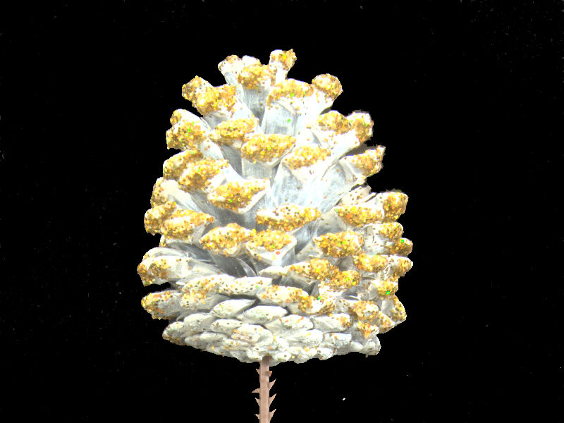 This natural pine cone is on a 5" pick and has been painted white and then sprinkled with gold glitter to give it a little sparkle.