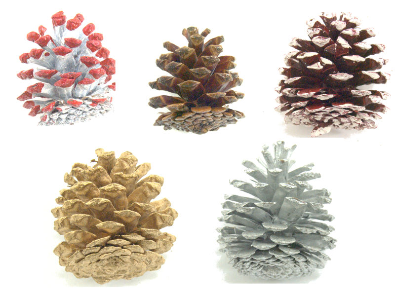 They have been painted for those who wish to add a little extra color to their wreath decorations. Match pine cone and bow colors or mix and match. The box of assorted colors lets you experiment and helps you decide which colors you like best.