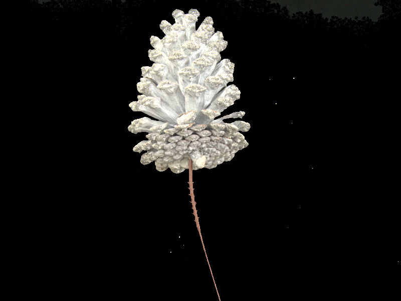 These picked pine cones are white with a silver glittered tip. The 6" pick makes it very easy to attach.