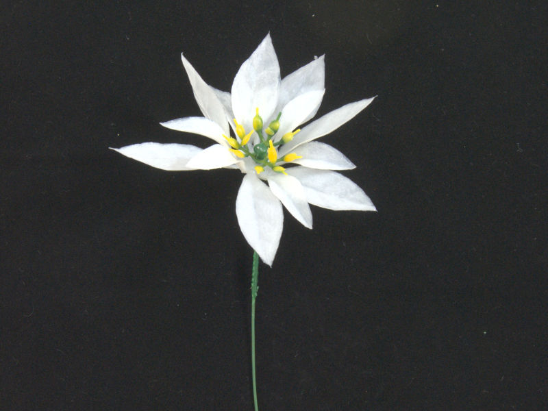 These poly vinyl poinsettias are waterproof and are available in red or white on a 4" pick.