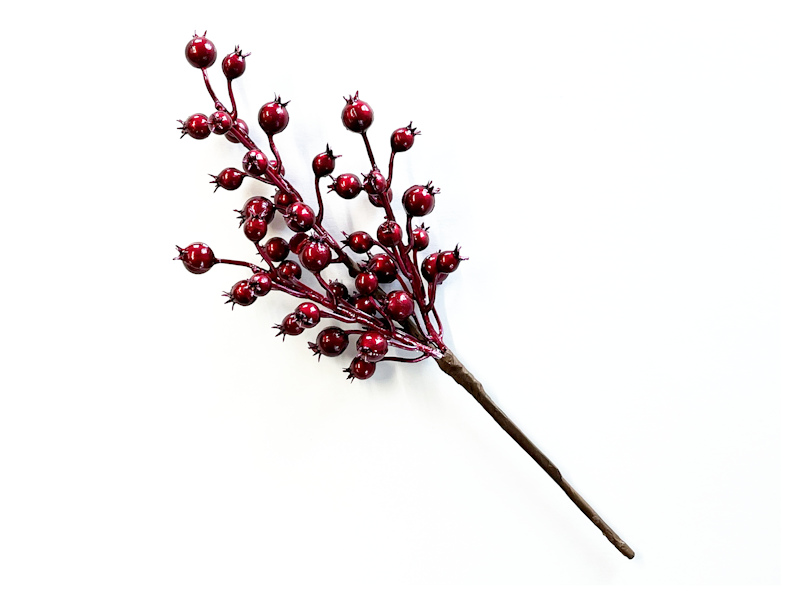 This 11-inch berry spray has 40 shiny, burgundy berries on a sturdy stem. The sprays come in a box of 12 pieces and make a colorful addition to your wreaths, centerpieces and Christmas greenery boxes.
