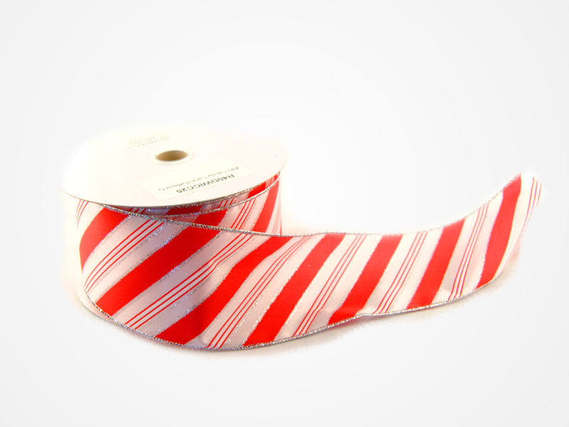 Stunning red and white candy cane ribbon with silver wired edge