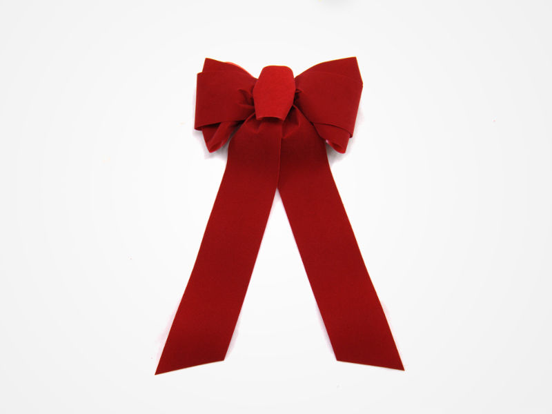 This bow is made with #40 (2-5/8" wide) ribbon. Seven loops make a diameter of approximately 9" with 15" tails, making the bow thickness 4".