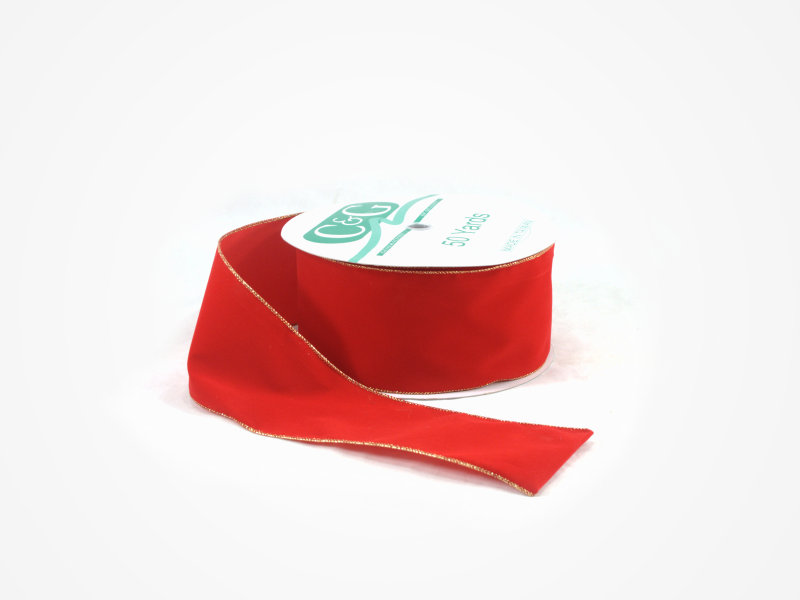This weather resistant ribbon has a nylon polyester back with a gold wired edge and is available on larger rolls.