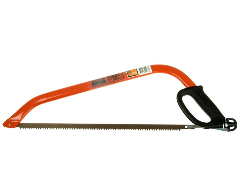 21" pruning or camping saw with strong tubular steel frame, designed to utilize full cutting length of blade. Tension lever for quick blade replacement.